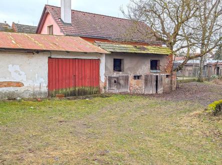 Nakonec je zde stavba skladu a garáže s navazujícími zděnými kurníky, o celkové zast. ploše 67 m2. Sklad a garáž jsou v dobrém stavu, zděný kurník je určen k rekonstrukci.